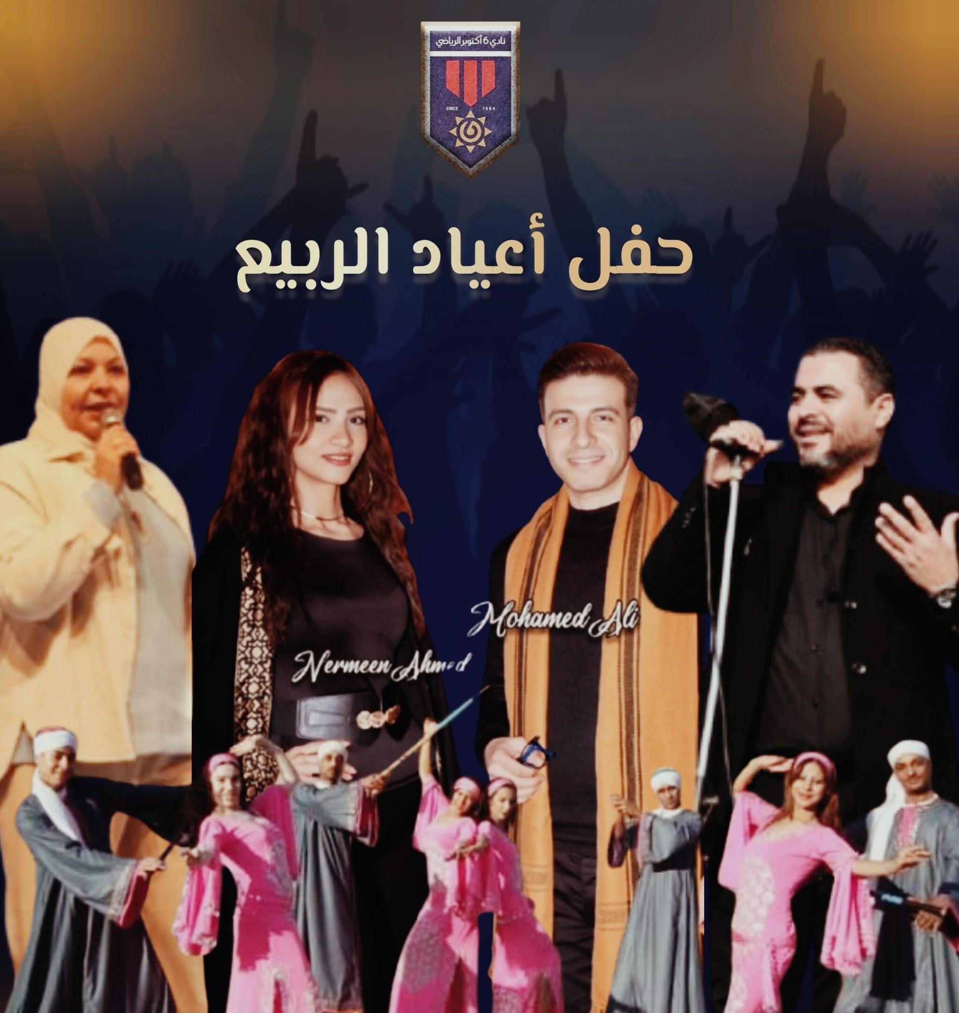 #حفل_أعياد_الربيع_بنادي_6_أكتوبر 🩷 في أجواء مليئة بالبهجة والفرحة 💥🥳 تحت رعاية مجلس إدارة النادى برئاسة أ.د./ عبد اللطيف صبحى تعلن إدارة العلاقات العامة عن دعوتكم لحضور حفـــل عيـــــد الربيع بالتعاون مع لجان الــــرواد ـ الفنيـــــة الاجتماعية ـ المرأة ـ خدمات الأعضاء التنمية البشرية وذلك يوم الاثنين 13 إبريل 2026 الساعة 4 مساءً بالـ منطقة الاجتماعية الجديدة 🎭 فقرات الحفل: 🌺 فرقة بنات النيل للفنون الشعبية – عروض فلكلورية تعكس التراث المصري الأصيل. 🎼 فرقة فكرة الفنية بقيادة المايسترو سامح نبيه ✍️ فقرة شاعرة النادي / إيمان سمير 🎤 الفقرة الفنية للمطربة / نرمين 🎤 المطرب / محمد علي 🎹 عازف الأورج / محمد حسين ✨ ننتظركم لقضاء أمسية ربيعية مميزة مليئة بالفن والبهجة مع الأسرة والأصدقاء كل عام وأنتم بخير 🩷