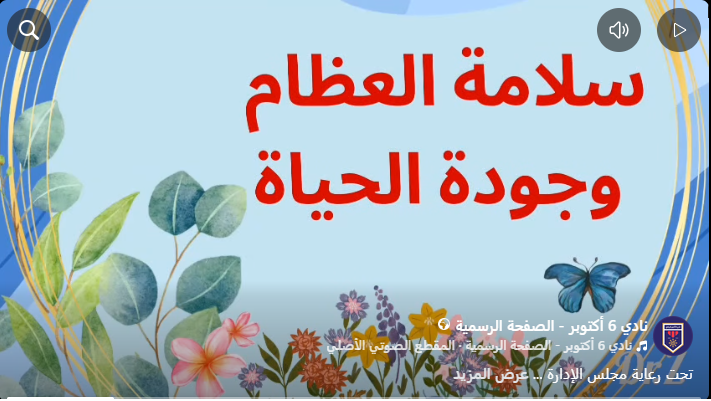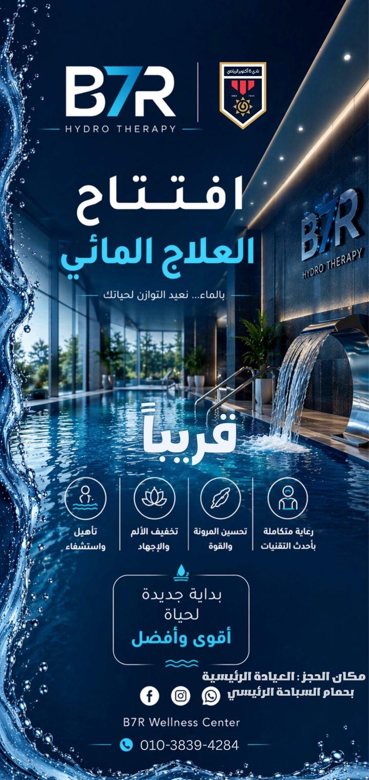 قريبًا في نادي 6 أكتوبر الرياضي 💙 تحت رعاية مجلس الإدارة بقيــادة الأستاذ الدكتور عبداللطيف صبحي 💧 افتتاح وحدة العلاج المائــي بالماء... نعيد التوازن لحياتك ✔️ رعايـــــــة متكاملــــة بأحدث التقنيات ✔️ تحســــــــين المرونــــــــة والقـــــــــوة ✔️ تخفــــــيف الألـــــــــم والإجهـــــــــــاد ✔️ تأهيل واستشفـــــــاء بأعلــــــى كفاءة 👨⚕️ بإشراف نخبة مميزة من المتخصصين 👩⚕️ خدمــــات متاحــــة للرجال والسيدات استعدوا لتجربة مختلفــــــــة لأن العلاج هنا مش بس شفاء ده رجوع للحياة بطاقة جديدة ✨