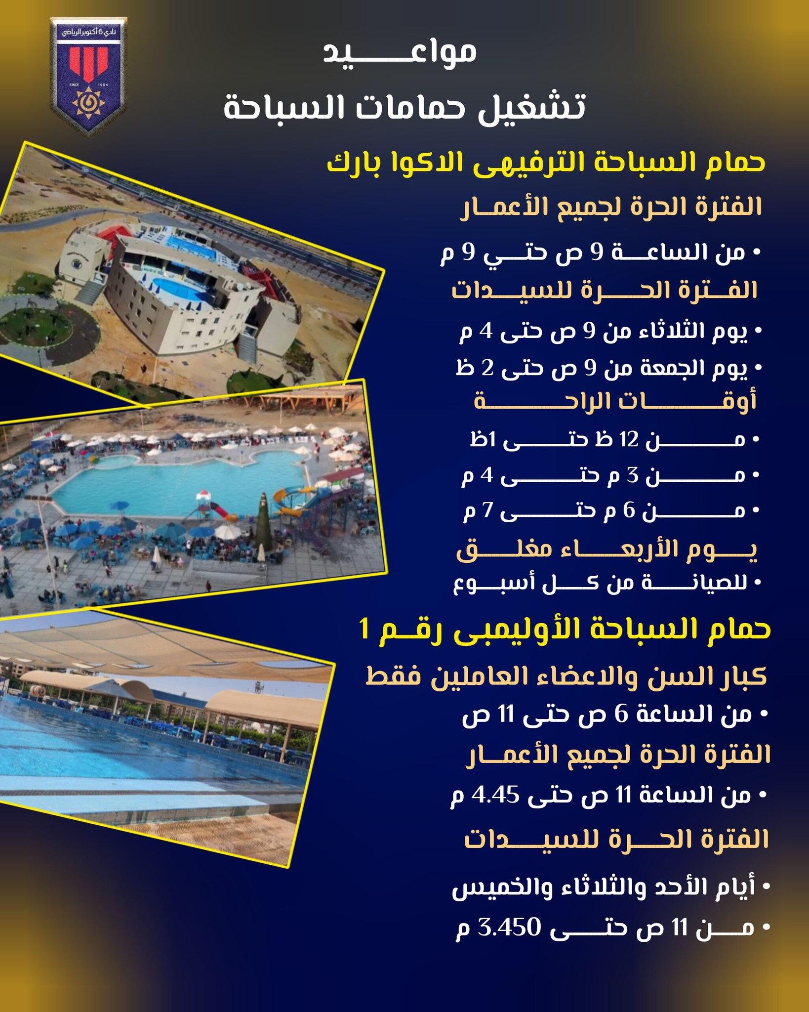 مواعيد تشغيل حمامات السباحة 🏖️🌊 نتمنى قضاء وقت ممتع للسيدات والسادة الأعضاء الكرام