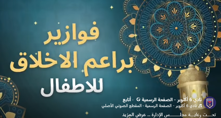 فوازير برعم الاخلاق للاطفال #التفاصيل تقدم لكم لجنة التوعية والاخلاق فوازير برعم الاخلاق للاطفال تابعوا الفزوره كل يوم وفي اخر الشهر حنكتبهم ونجمعهم في ظرف ونوديهم علي العلاقات وتاني يوم العيد باذن الله نجيب حبايبنا يفرحوا معانا بالسحب علي الجوايز وكمان في جوايز عينييه كتييييييير الفزوره حتتزاع كل يوم علي قناة اللجنة والقناة الرسمية للنادي بالتعاون مع لجنه التوعيــــة والاخــــــلاق