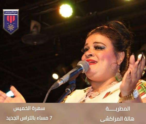 سهرة الخميس مع المطربة هالة المراكشي بالتعاون مع اللجنة الاجتماعية وذلك يوم الخميس 11 ديسمبر 2025 الساعة 7 مساء بالتراس الجديد