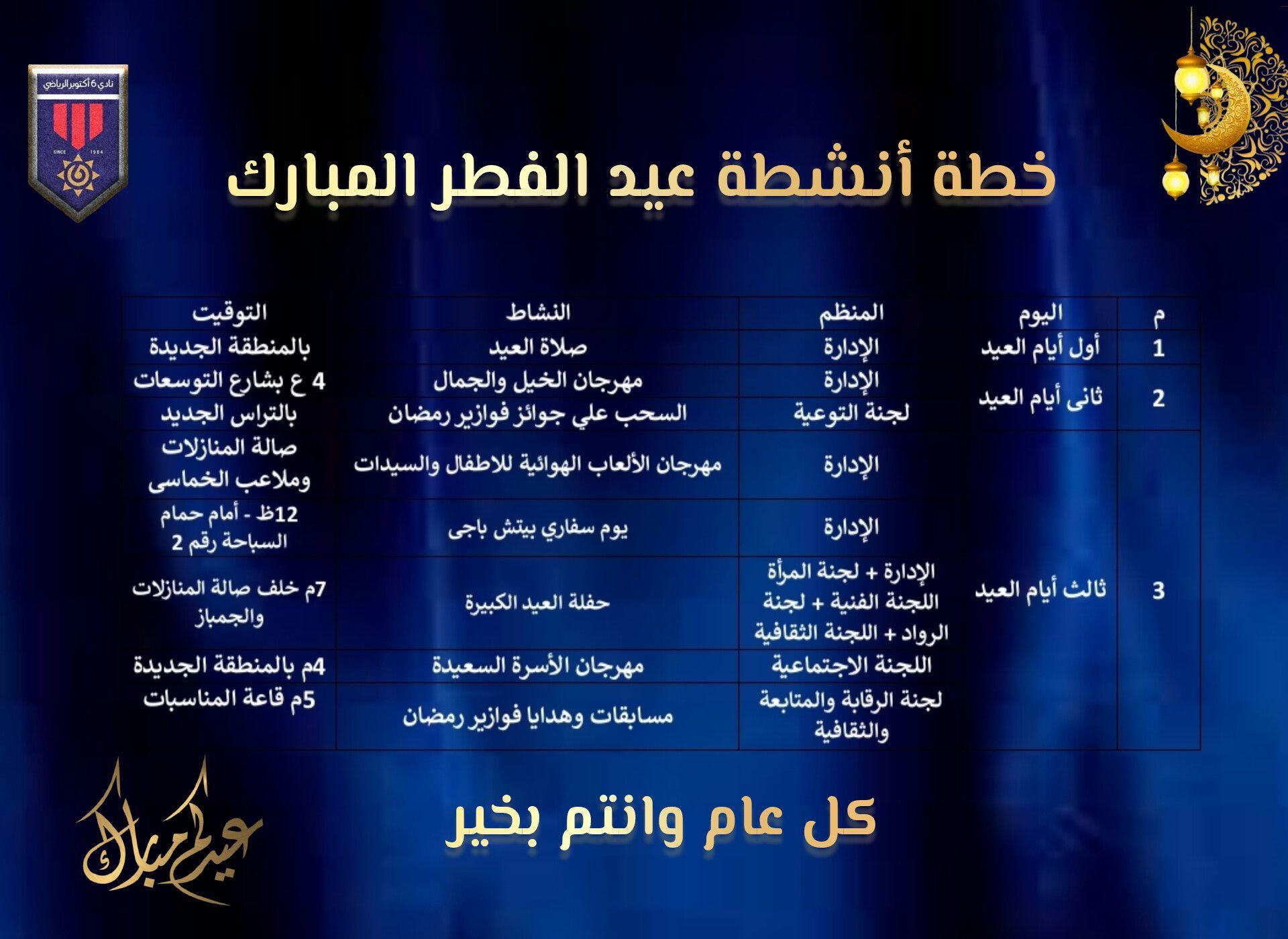 خطة أنشطة عيد الفطر المبارك كل عام وانتم بخير 🌙✨