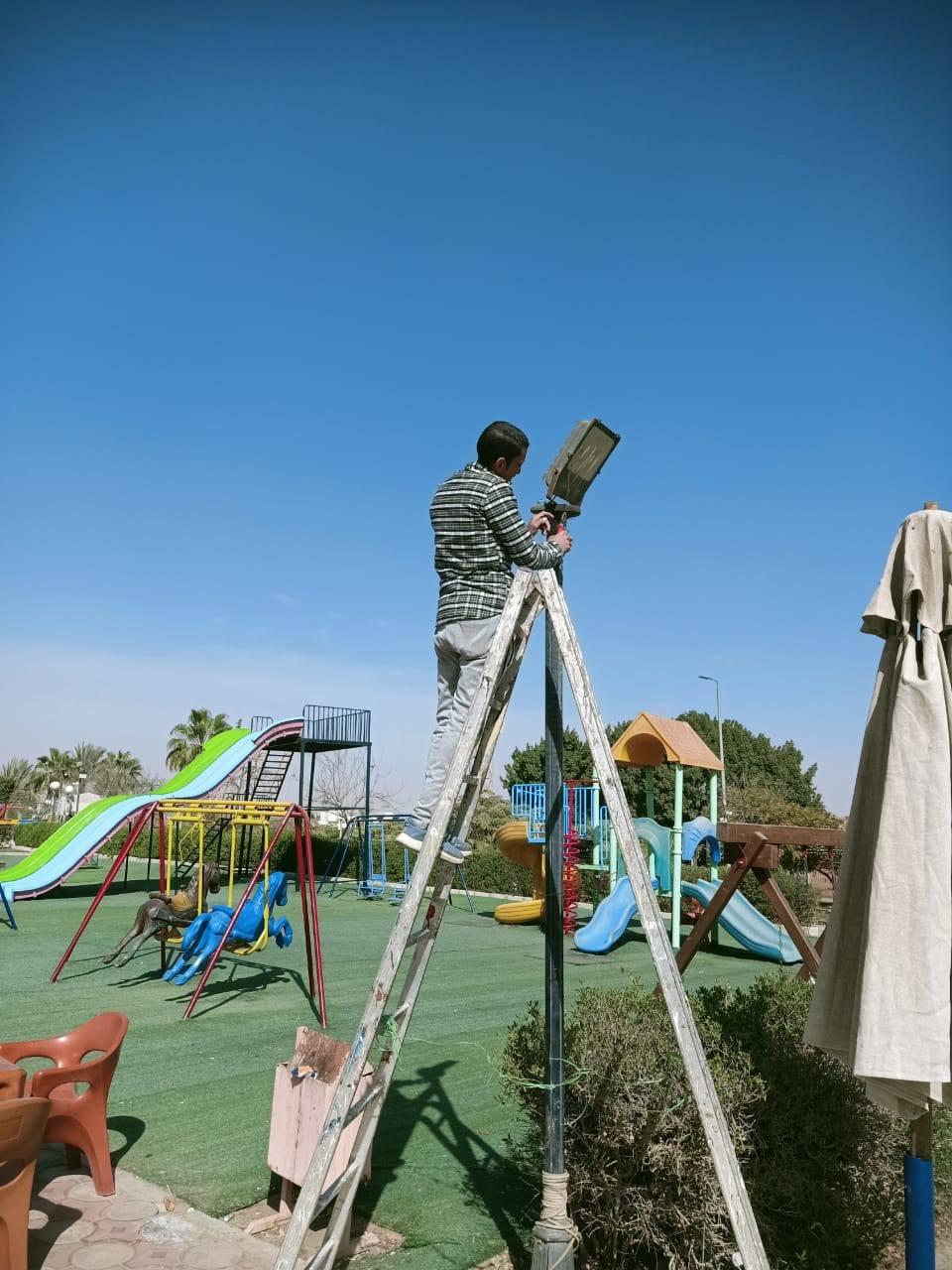 #الشغل_مستمر_والتطوير_متواصل_لخدمة_أفضل في شتى المجالات داخل النادي تنفيذ أعمال تركيب عدد 6 كشافات بقدرة 100 وات لزيادة إنارة حديقة الطفل وذلك لتوفير بيئة أكثر أمانًا وراحة لأطفالنا أثناء اللعب 👧🧒💡