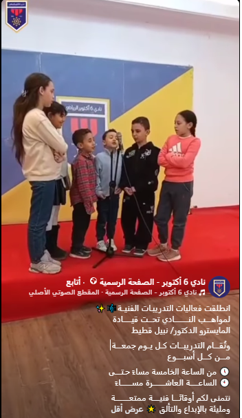 انطلقت فعاليات التدريبـات الفنيــة🎼✨ لمواهــــب النــــــــــادي تحـــت قيــــــادة المايسترو الدكتور/ نبيل قطيط وتُقــــام التدريبـــات كــل يــوم جمعــــة مــــن كــــل أسبـــــوع 🕔 من الساعة الخامسة مساءً حـتــــى 🕙 الساعــــــة العاشـــــــــرة مســــــــاءً نتمنى لكم أوقاتًــــا فنيـــــة ممتعــــــــــة ومليئة بالإبداع والتألق 🌟