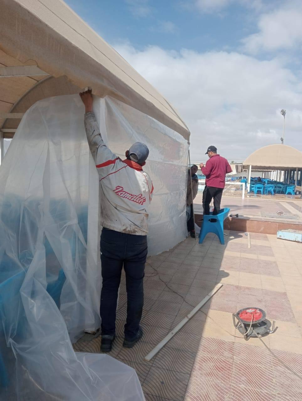 استكمـالا لأعمال #التطوير_ورفع_الكفاءة في شتى المجالات داخل النادي تنفيذ أعمال شد وتركيب مشمع على البرجولة بجوار حمام الغطس بمجمع السباحة رقم (1) وذلك ضمن أعمال الصيانة ورفع كفاءة المناطق الخدمية بهدف توفير الحماية وتحسين مستوى الاستخدام للسادة الأعضاء