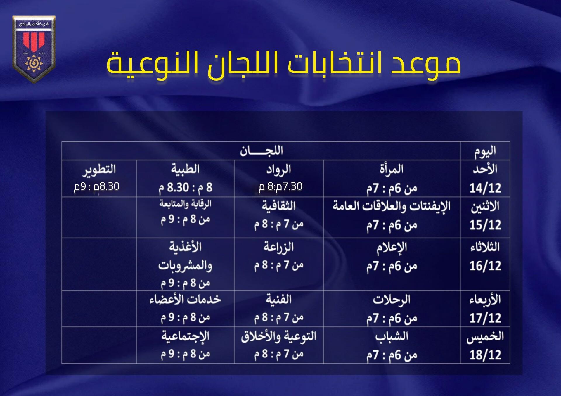 تعلن إدارة العلاقات العامة عن المعرض الخيرى 🌹 بداية الشتاء 🌹 بالتعاون مع اللجنة الاجتماعية وذلك يوم الاثنين 15 ديسمبر 2025 الساعه 2 ظهراً بقاعة المناسبـــــــــات لصالح العاملين بالنادى وذوي الحاجة أهلاً بكل أعضاء النادى للمشاركه معنا في المعرض الخيري #ملابس #أحذية #أدوات منزليه #أدوات مدرسيه #العاب أطفال #مواد غذائية مغلفه تعالوا نعمل تكافل اجتماعي داخل النادى نادى اكتوبر نادى مجتمعي كبير